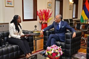 The Minister of Public Service and Labour of the Republic of Rwanda, Ms Christine Nkulikiyinka, paid a courtesy call today on the Prime Minister, Dr Navinchandra Ramgoolam, at the New Treasury Building in Port Louis today. The Minister indicated that the meeting reaffirmed the cordial relations between Mauritius and Rwanda,